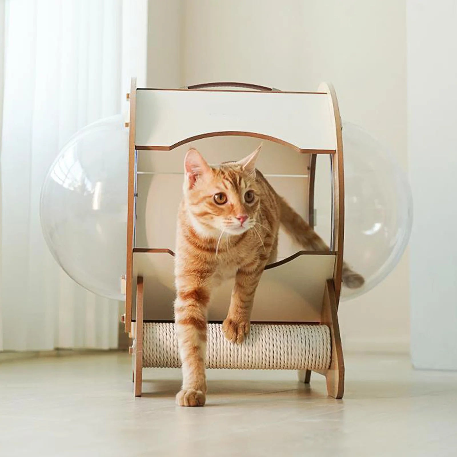 Modern Cat Pod House – Luxury Wooden Cat Bed with Scratch Post & Transparent Bubble Windows